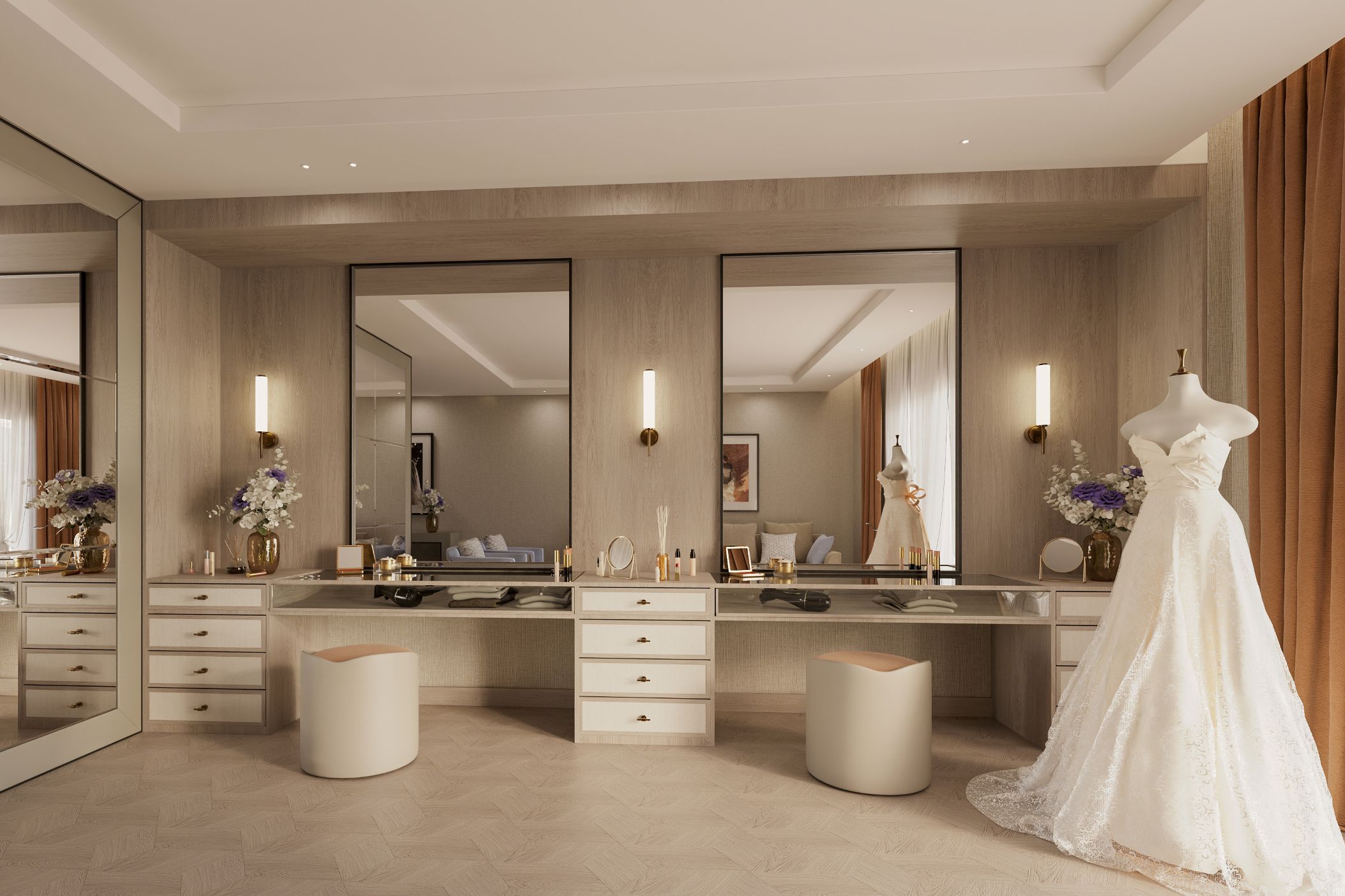 The design concept blends modern furniture shapes and details with historic patterns, creating a space that honors the past within a contemporary context. The design elements and patterns draw inspiration from the client’s branding and colors, the hotel’s geographic region, and The distinctive features of Makkah.while The artwork captures the holy and spiritual experiences of the guests, with local patterns woven into every detail.
