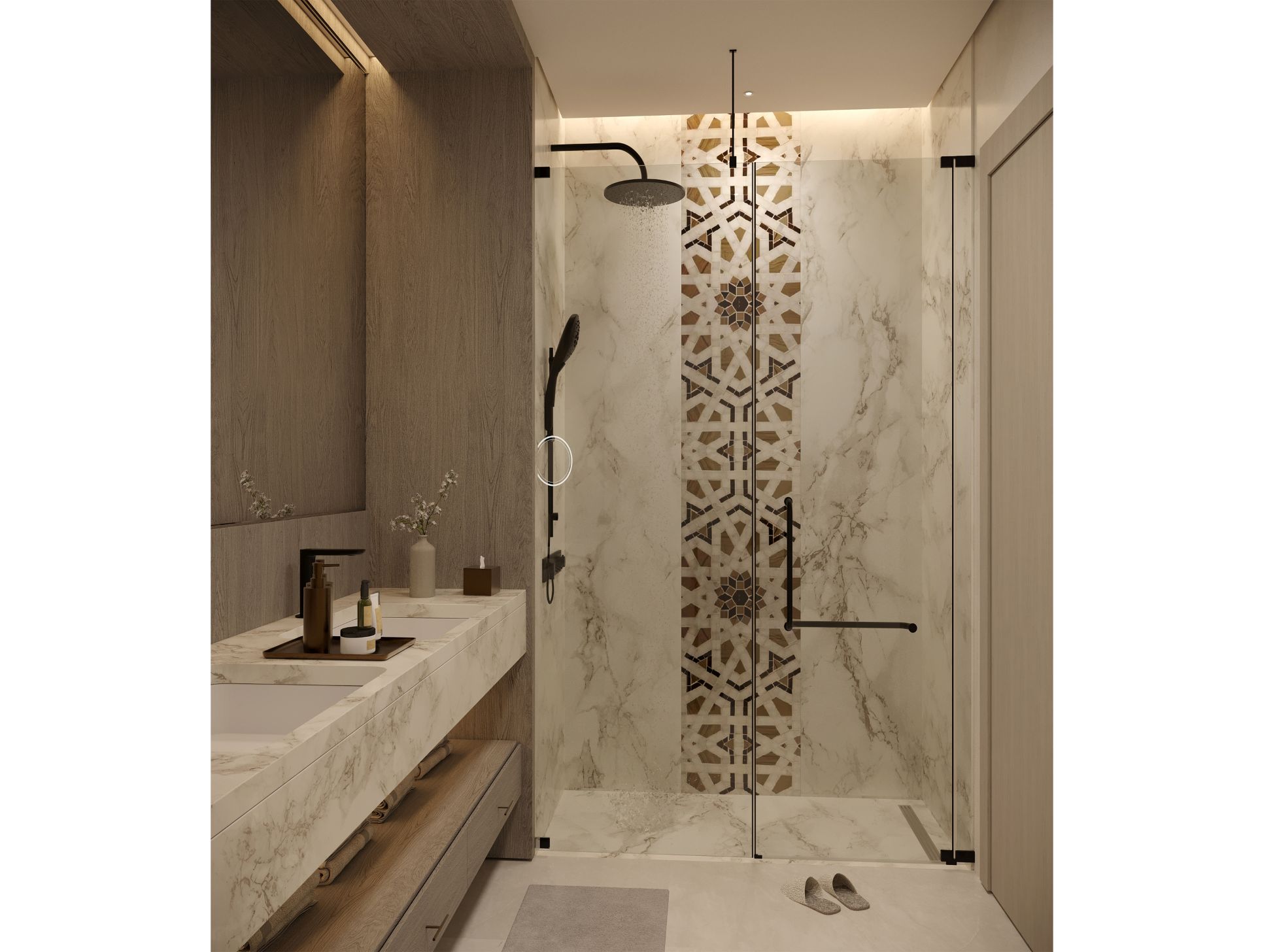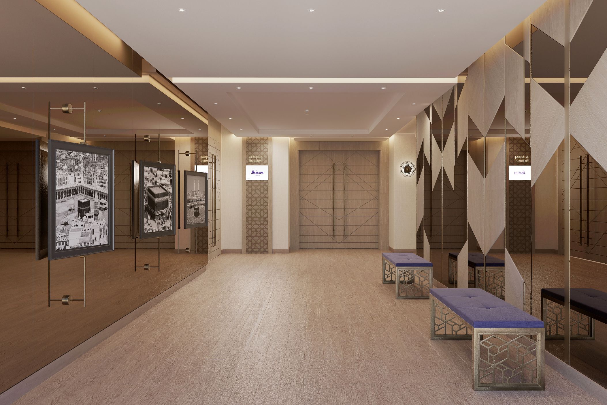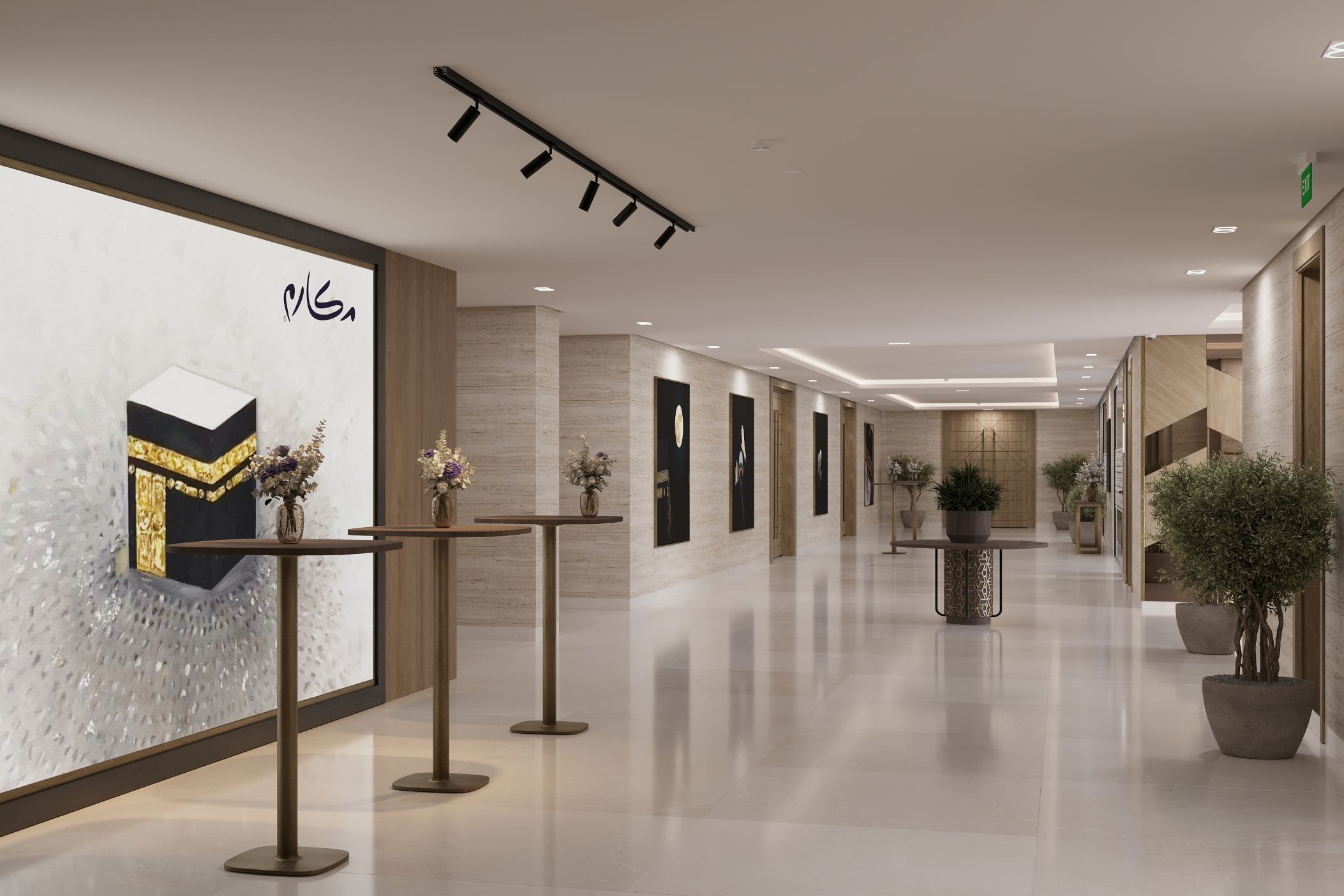 The design concept blends modern furniture shapes and details with historic patterns, creating a space that honors the past within a contemporary context. The design elements and patterns draw inspiration from the client’s branding and colors, the hotel’s geographic region, and The distinctive features of Makkah.while The artwork captures the holy and spiritual experiences of the guests, with local patterns woven into every detail.